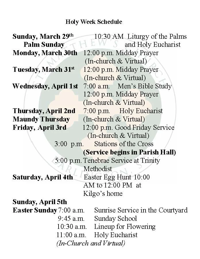 (see picture on the right for Holy Week Schedule)